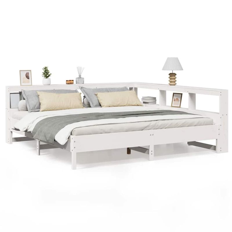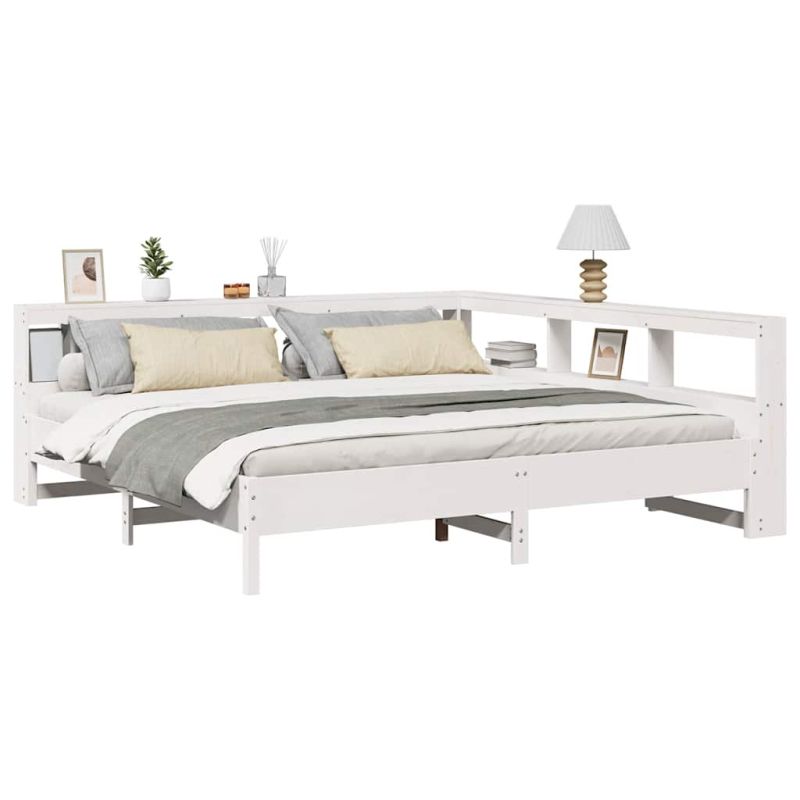 Осигурете си по-добър и спокоен сън с това легло с етажерка за книги! То представлява приветливо допълнение към всяка спалня. Стабилна и дълготрайна рамка: Масивната борова дървесина е известна със своята здравина и издръжливост. Нейните прави зърна и отличителни възли допринасят за рустик чара ѝ.Решетъчна основа за оптимална опора: Рамката на леглото е оборудвана с решетъчна основа за опора и дишане на вашия матрак.Голямо пространство за съхранение: Тази табла за глава разполага с вградено място за съхранение на книги, декоративни предмети и вещи от първа необходимост, което добавя функционалност и стил към вашата спалня.Два начина на сглобяване: Тази табла за книги предлага гъвкави възможности за сглобяване, като ви позволява да поставите дългата ѝ страна отляво или отдясно, за да съответства на пространството в спалнята ви.Спестяване на място: Тази Г-образна табла за глава приляга плътно към леглото, създавайки частичен корпус, за да увеличи максимално пространството в спалнята. Тя е идеален избор за по-малки или по-ограничени пространства. Добре е да се знае:Към това легло не е включен матрак. Ние предлагаме разнообразна селекция от матраци. Можете да проверите нашия магазин за подходящ матрак.