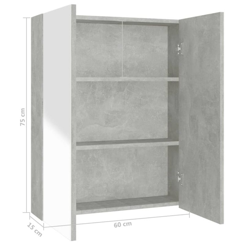 Шкаф с огледало за баня, 60x15x75 см, МДФ, бетонно сив