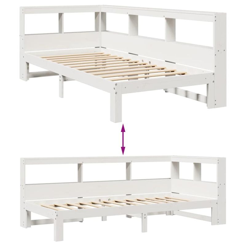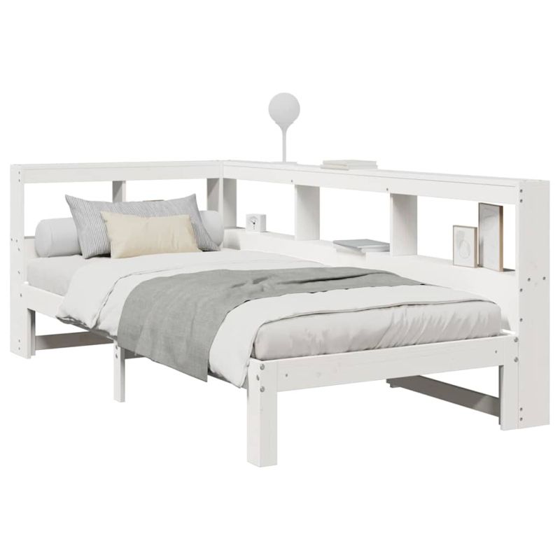 Осигурете си по-добър и спокоен сън с това легло с етажерка за книги! То представлява приветливо допълнение към всяка спалня. Стабилна и дълготрайна рамка: Масивната борова дървесина е известна със своята здравина и издръжливост. Нейните прави зърна и отличителни възли допринасят за рустик чара ѝ.Решетъчна основа за оптимална опора: Рамката на леглото е оборудвана с решетъчна основа за опора и дишане на вашия матрак.Голямо пространство за съхранение: Тази табла за глава разполага с вградено място за съхранение на книги, декоративни предмети и вещи от първа необходимост, което добавя функционалност и стил към вашата спалня.Два начина на сглобяване: Тази табла за книги предлага гъвкави възможности за сглобяване, като ви позволява да поставите дългата ѝ страна отляво или отдясно, за да съответства на пространството в спалнята ви.Спестяване на място: Тази Г-образна табла за глава приляга плътно към леглото, създавайки частичен корпус, за да увеличи максимално пространството в спалнята. Тя е идеален избор за по-малки или по-ограничени пространства. Добре е да се знае:Към това легло не е включен матрак. Ние предлагаме разнообразна селекция от матраци. Можете да проверите нашия магазин за подходящ матрак.