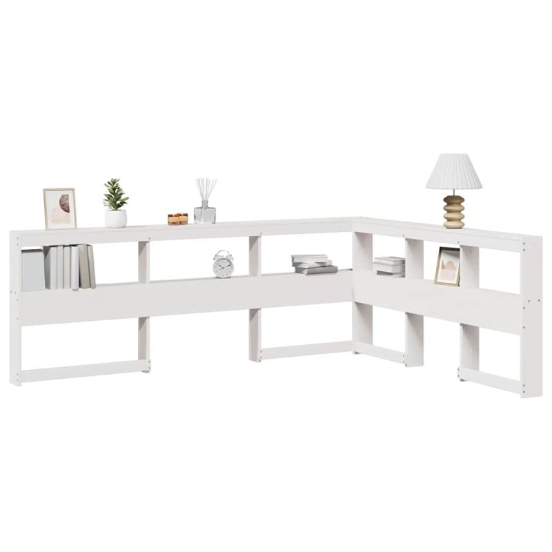 Табла за книги с L-образна, бяла, 140 см, масивно дърво бор