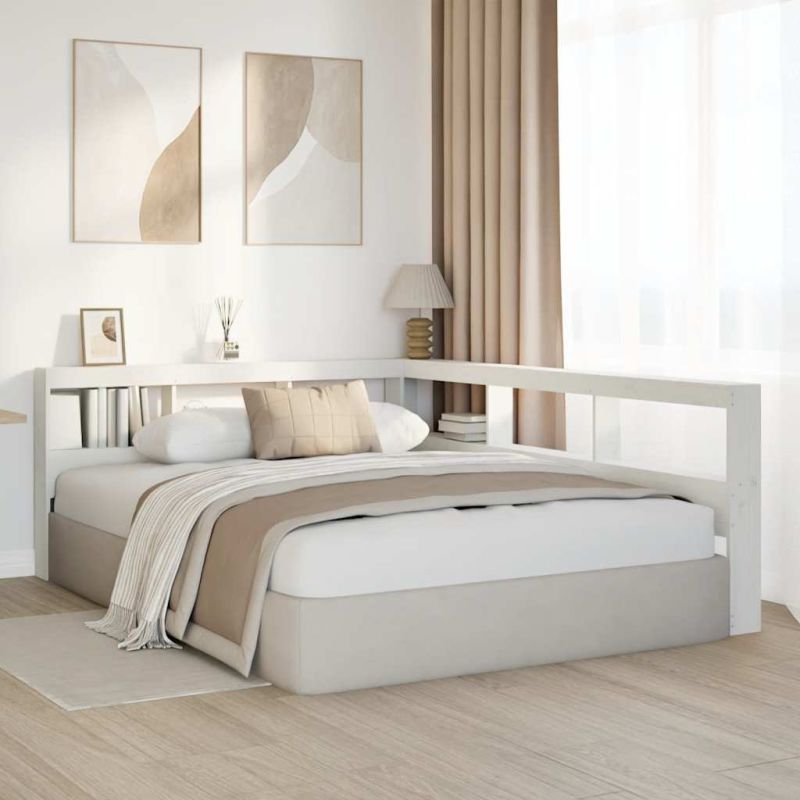 Табла за книги с L-образна, бяла, 160 см, масивно дърво бор