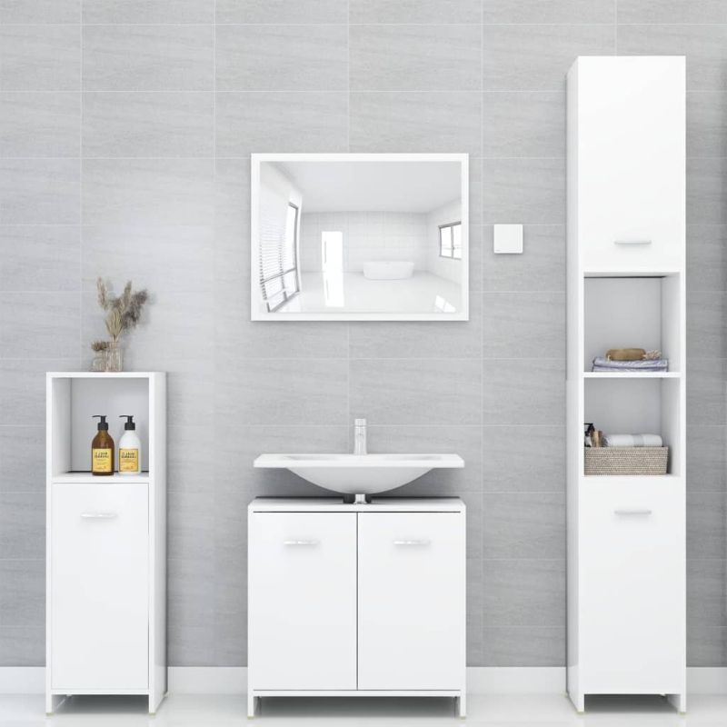 Комплект мебели за баня от 4 части, бял, инженерно дърво