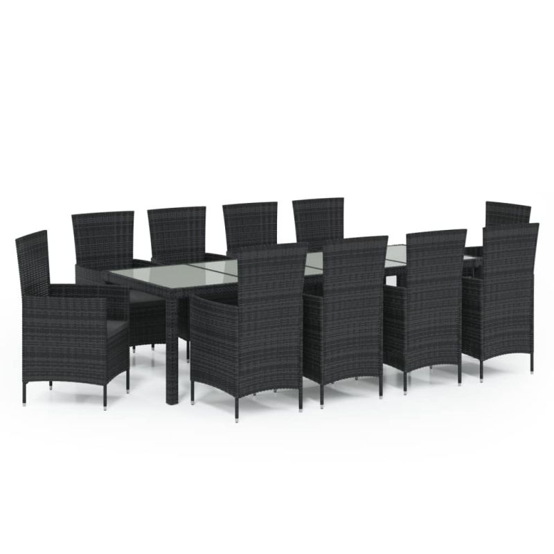 Градински комплект с възглавници, 11 части, полиратан, черен