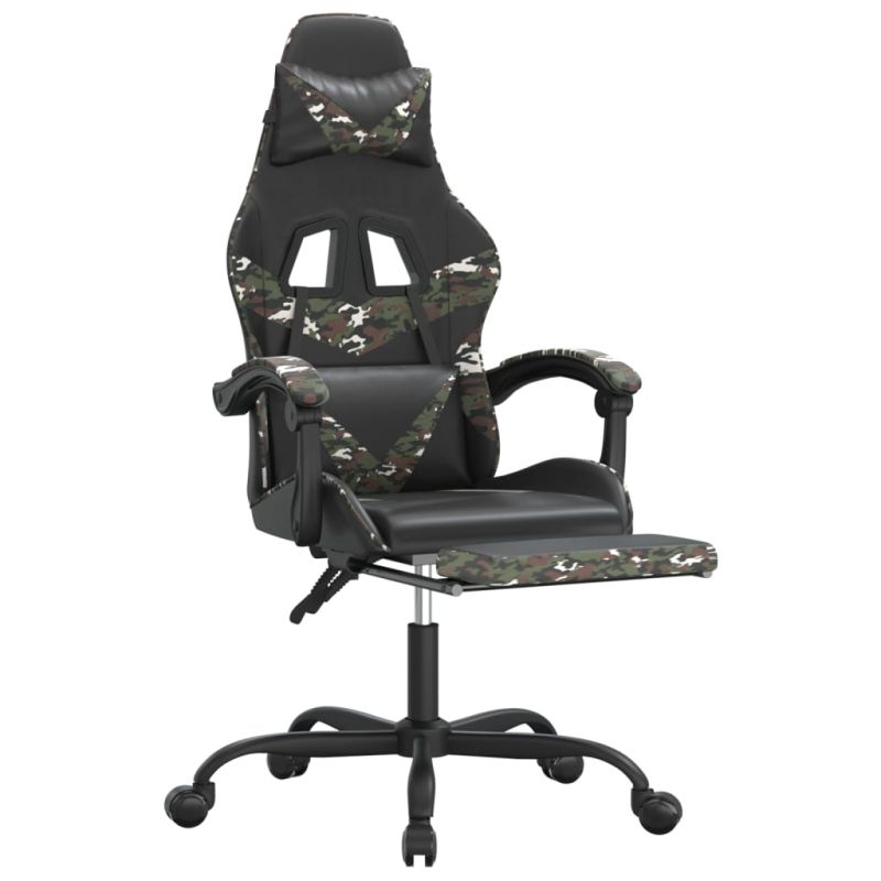 Гейминг стол с опора за крака черно и камуфлаж изкуствена кожа