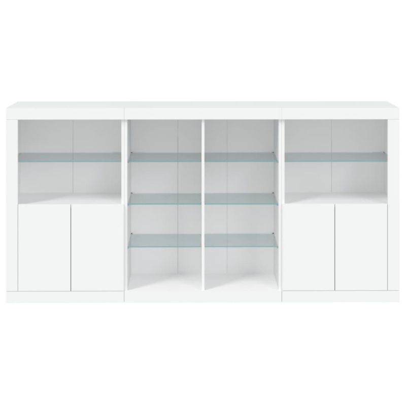 Сайдборд с LED светлини, бял, 202x37x100 см