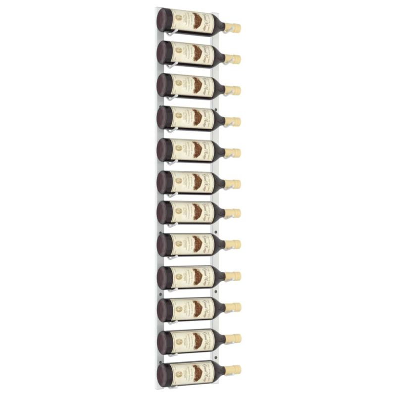 Стойка за вино за 12 бутилки, стенен монтаж, бяла, желязо