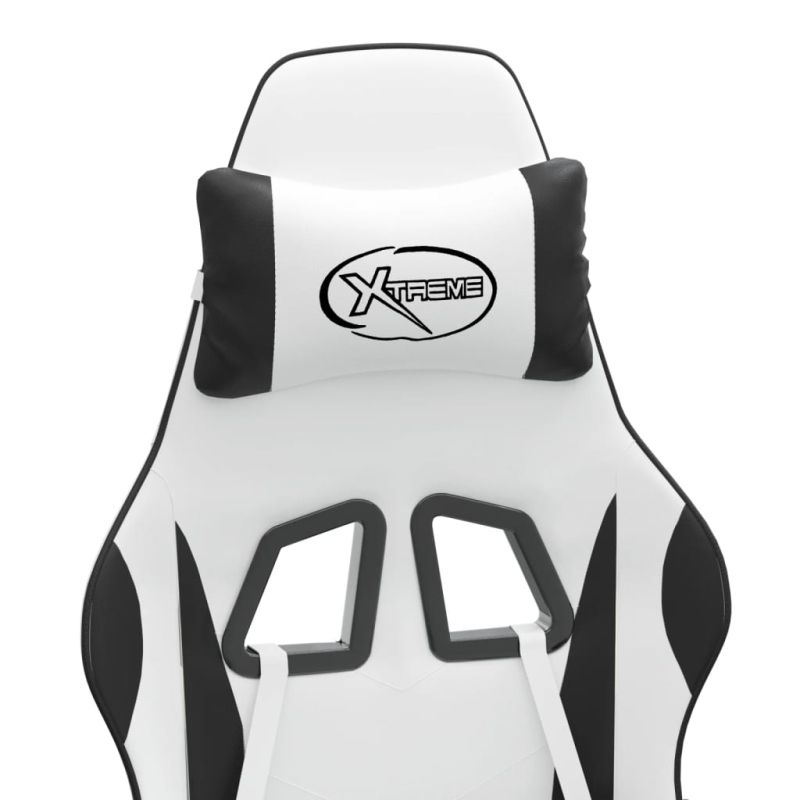 Въртящ гейминг стол с опора за крака бяло-черен изкуствена кожа