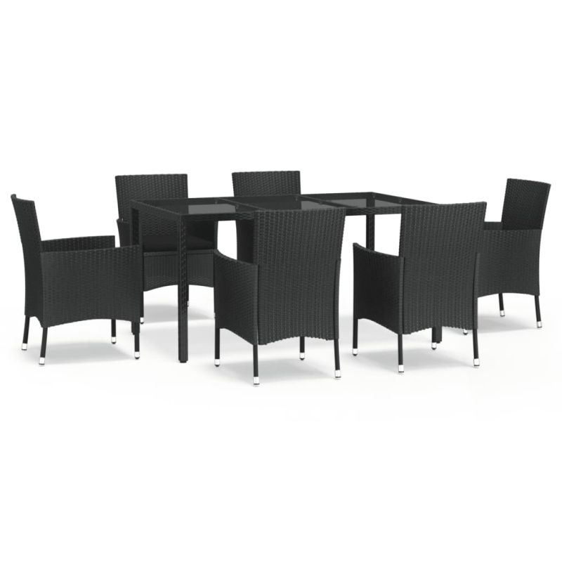 Градински трапезен комплект 7 части възглавници черен полиратан