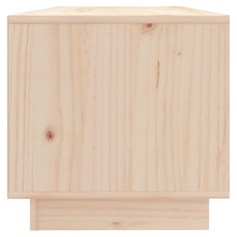 Този дървен ТВ шкаф, отличаващ се с изчистени линии и семпъл външен вид, придава нотка елегантност към вашата стая. Първокласен материал: Масивната борова дървесина е красив естествен материал. Обработете повърхността с масло, восък, лак или стъклен финиш за по-здрава повърхност и лесно почистване. Боровата дървесина има прави шарки, а възлите придават на материала характерния му рустик вид.Здрава и стабилна рамка: Дървената рамка осигурява здравина и стабилност.Достатъчно място за съхранение: ТВ модулът има голямо отделение. Мястото за съхранение улеснява организирането на вещите.С функция за декорация: Стабилната горна част е идеална за подреждане на декоративни предмети, фоторамки и саксийни растения.