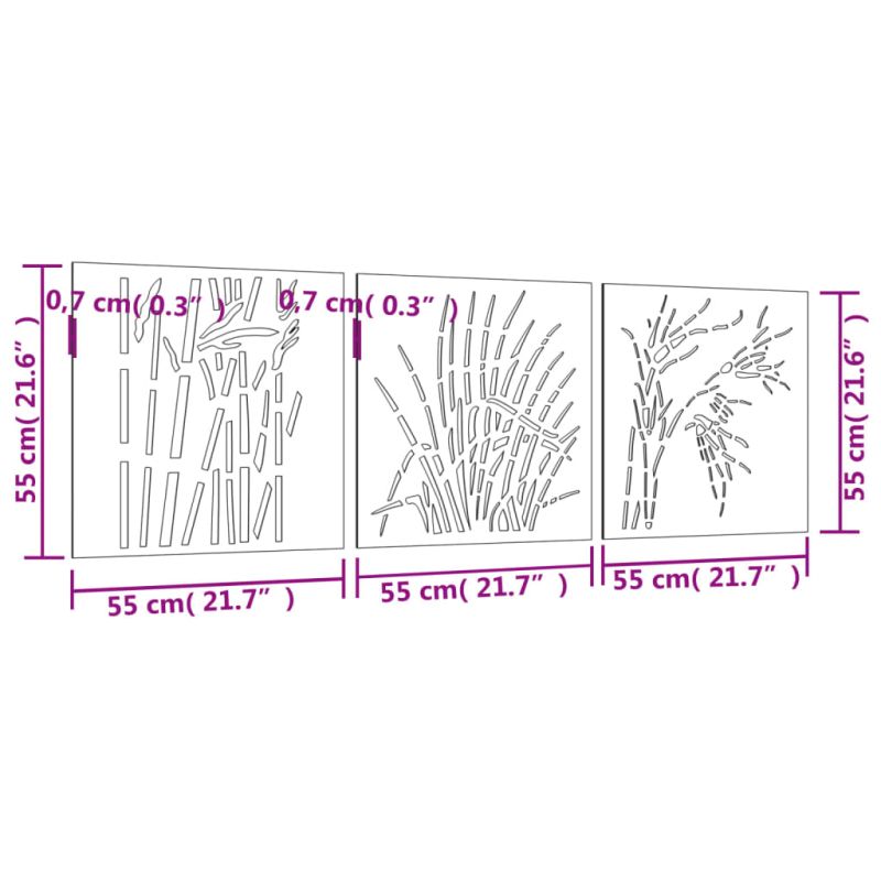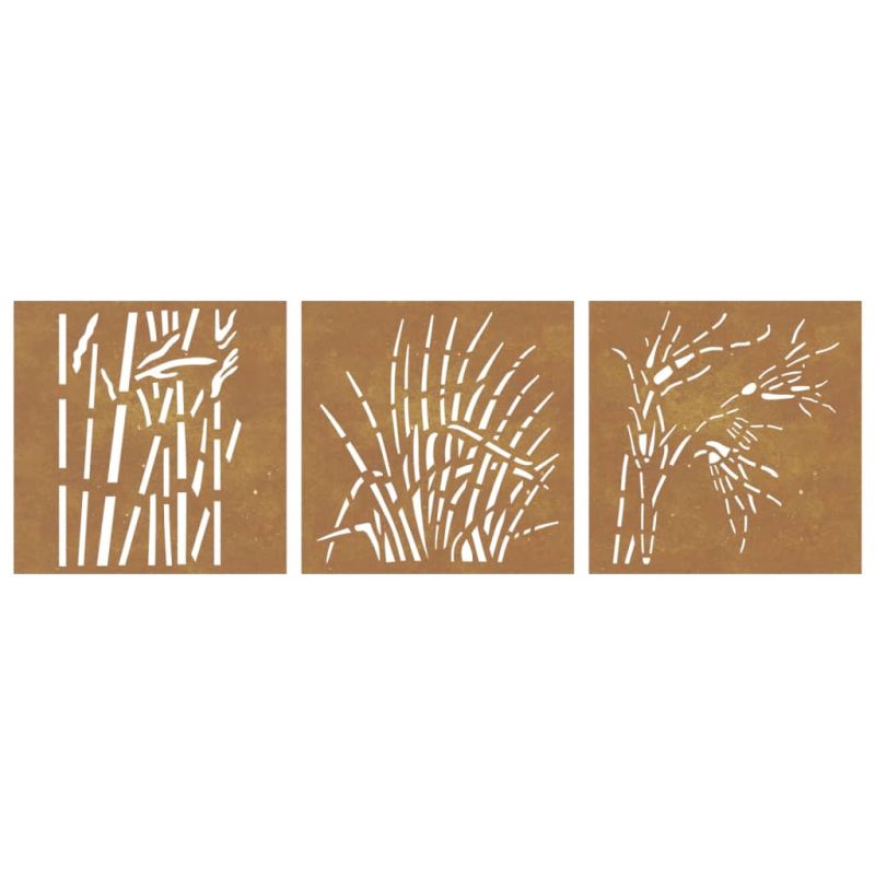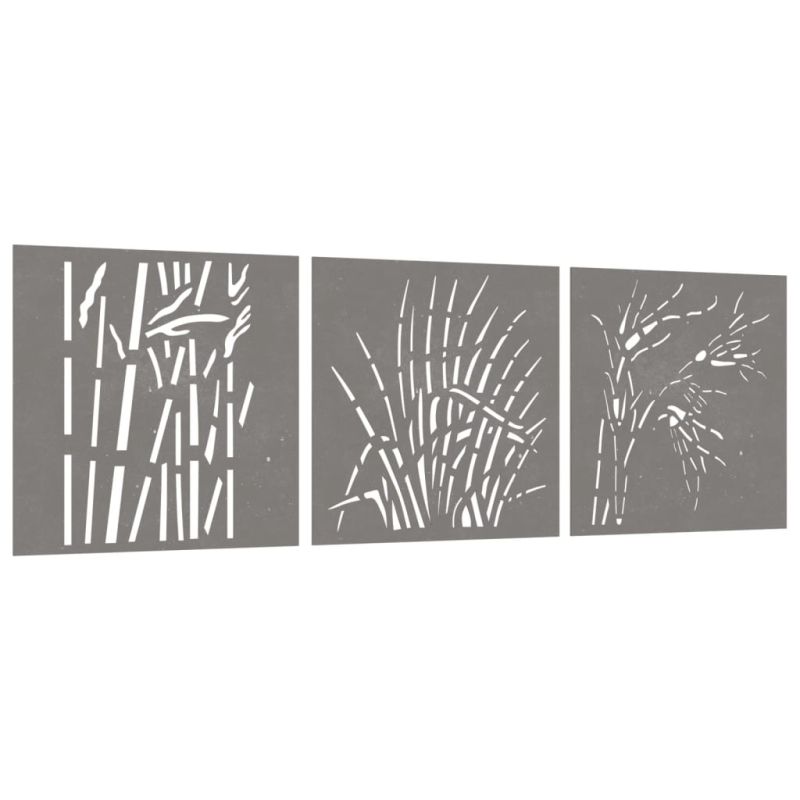Градински декорации 3 бр 55x55 см стомана кортен дизайн треви