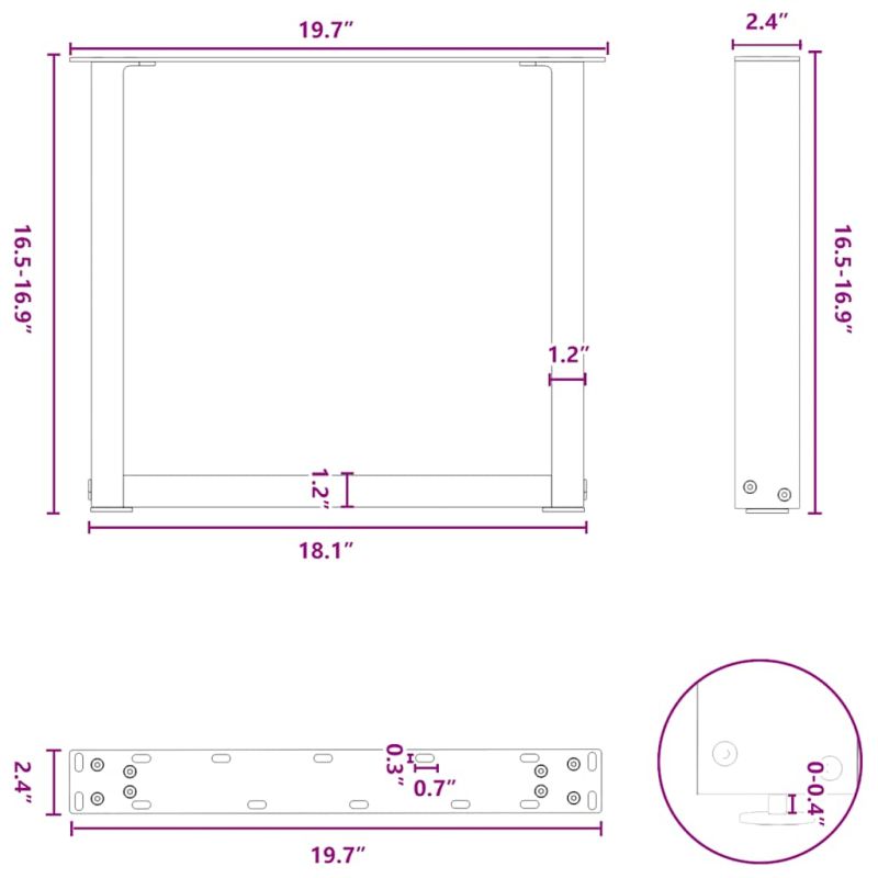 Крака за масичка за кафе, U-образни, 2 бр., естествена стомана, 50 x (42-43) см, стомана