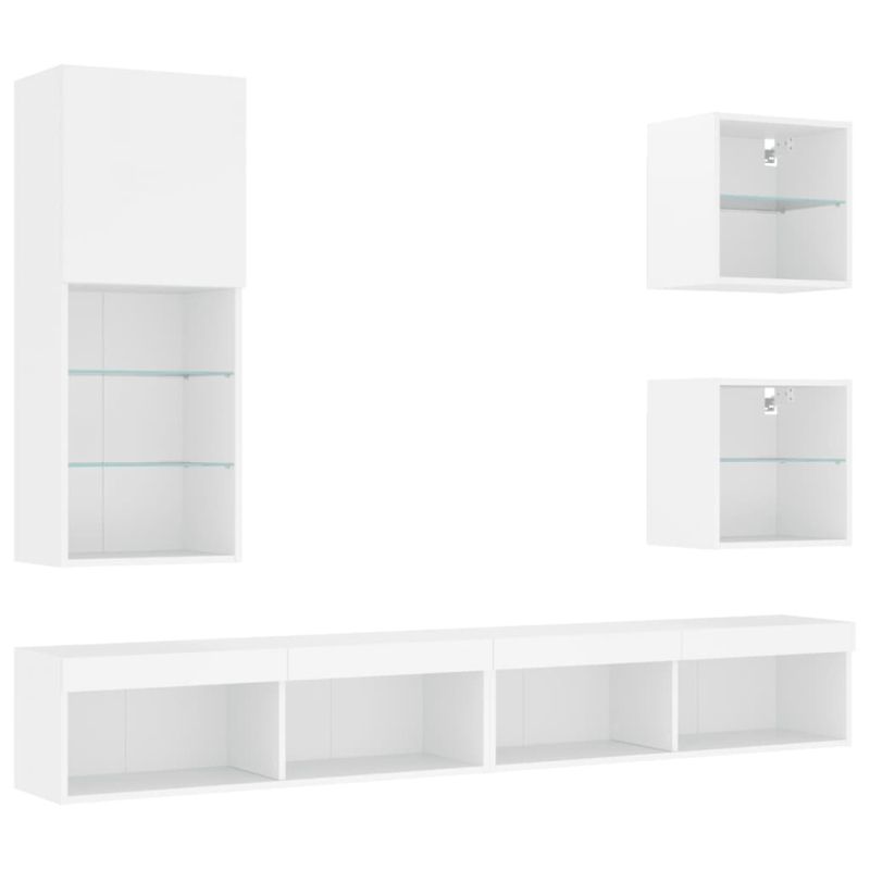 ТВ стенни модули с LED, 5 части, бели, инженерно дърво
