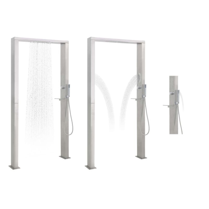 Нашата многофункционална душ панелна система има стилен дизайн и ще бъде чудесно допълнение към зоната около вашия басейн и други открити жилищни площи. Душ системата е изработена от издържлива неръждаема стомана с матово покритие и има красив извит дизайн. Тя се отличава с джетове за дъжд, водопад, масаж и ръчна душ глава, която лесно може да се превключи с копче. Потопете се в истински релаксиращ душ и се насладете на модерния стил на тази красива душ панелна система! Душ панелната система се сглобява лесно. Доставката включва и монтажните аксесоари. Забележка: Продуктът не е соларен и не е душ панел с гореща вода.