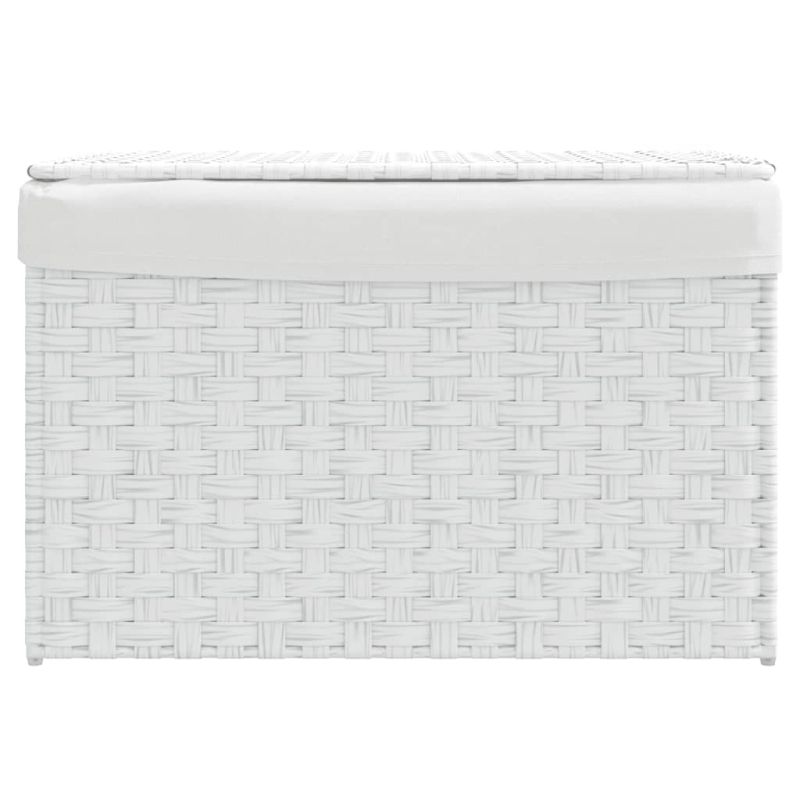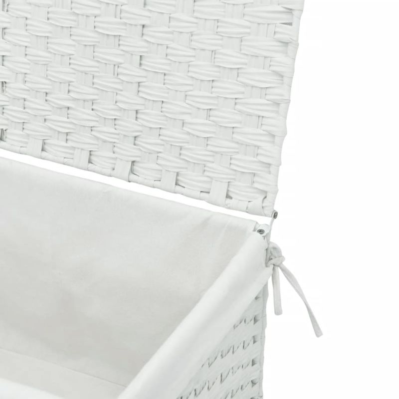 Кош за пране с капак, бял, 55,5x35x34 см, полиратан