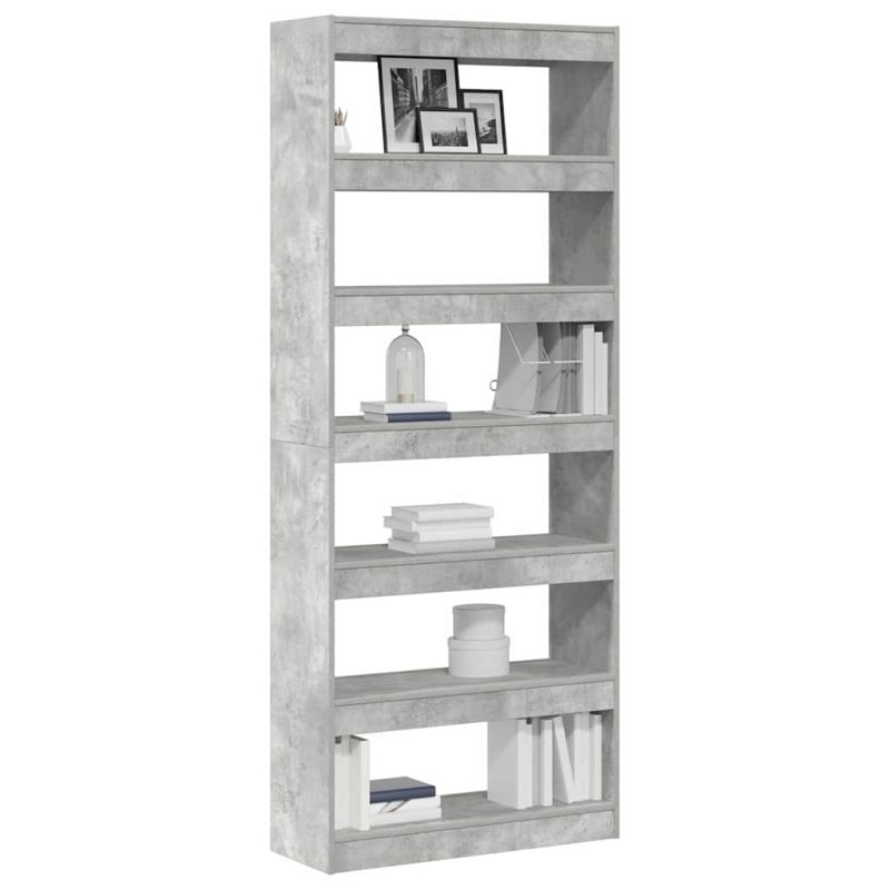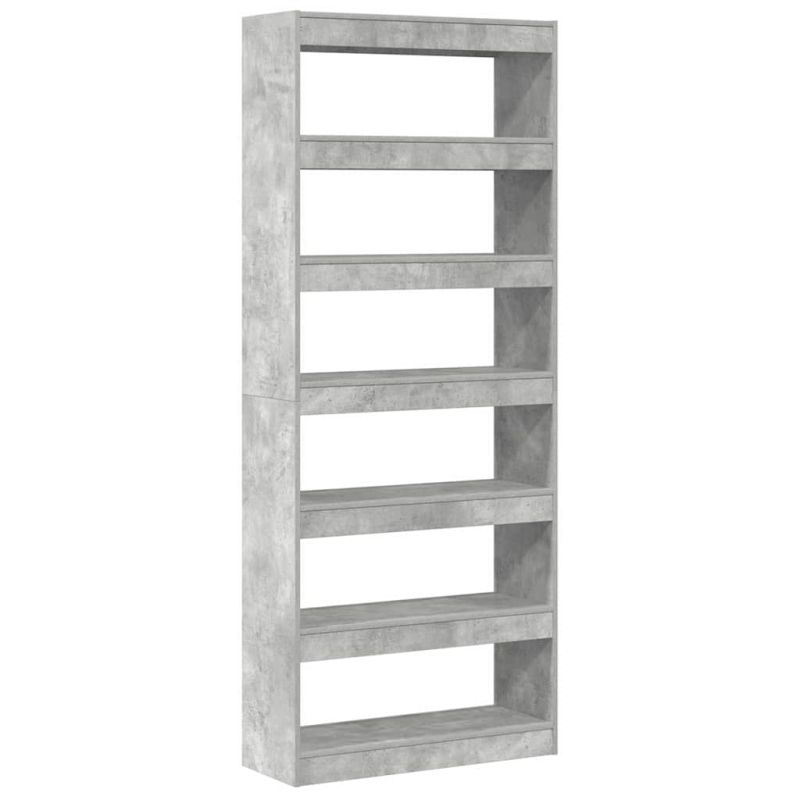 Библиотека с рафт Бетонно сиво 80 x 30 x 198 см Инженерно дърво