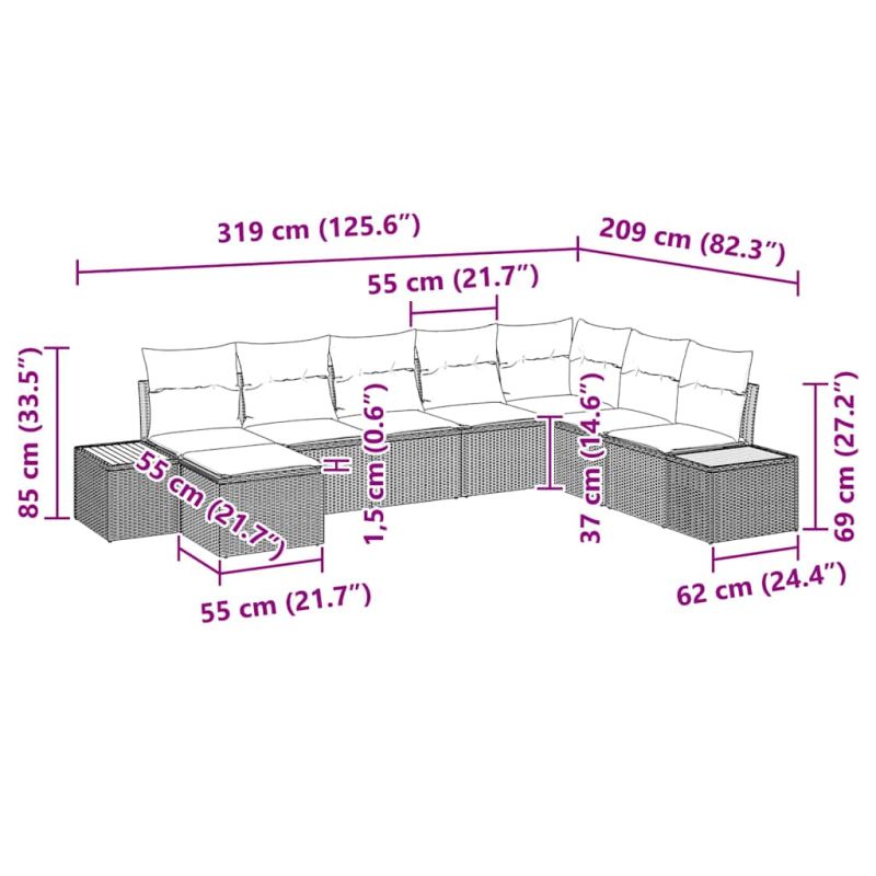 Градински Софа Комплект с възглавница 8 pcs Бежово Полиратан