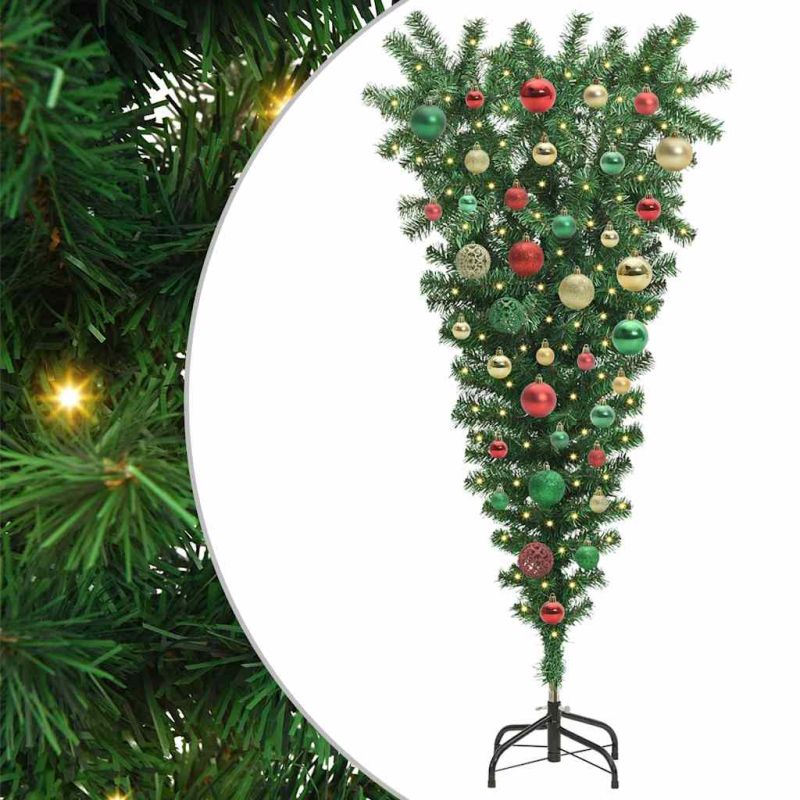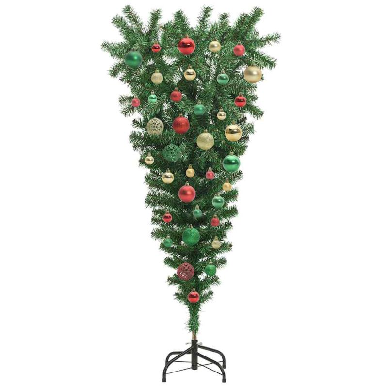 Обратен изкуствен коледен дърво с комплект топки Зелен 120 cm