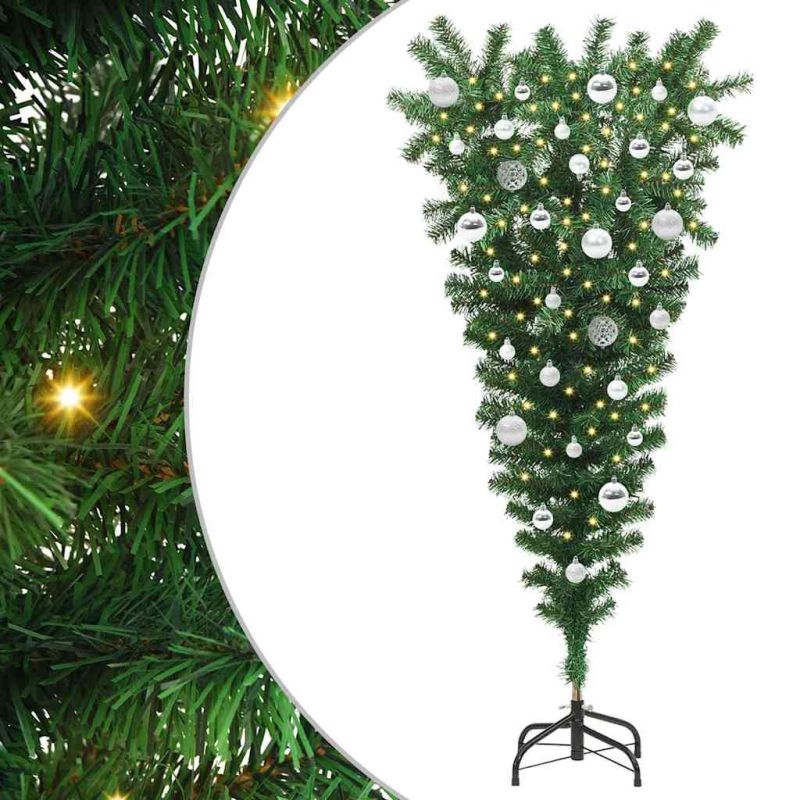 Дърво за Коледа с обръщане нагоре, изкуствено, предварително осветено, с комплект топки