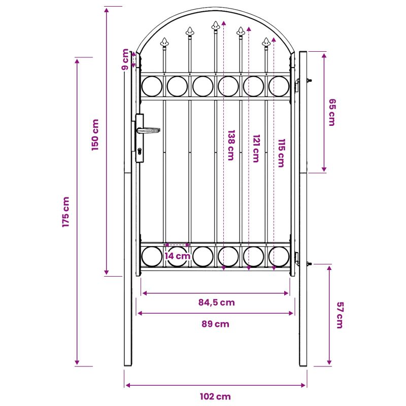 Тази сива врата за ограда предлага сигурно и надеждно решение за вашето открито пространство, било то градина или тераса. С традиционния си дизайн, тя се интегрира лесно с околната среда и добавя чар в района, докато осигурява практична функционалност. Дълготрайният завършек ѝ я прави подходяща за всякакви екстериорни стилове, идеална за онези, които ценят структурата и визията. Материали: Изработена от прахово боядисана стомана, тази врата съчетава здравина и елегантност, подходяща за дългосрочна употреба. Праховото покритие дава допълнителна защита, противодействаща на надрасквания и износване. Включени компоненти: С безопасна заключваща система, тази врата гарантира сигурност и спокойствие, ограничавайки достъпа на неупълномощени лица. Всеки механизъм изисква ключ, което ви дава контрол върху входа и повишава защитата. Характеристики / Функция / Дизайн: Вратата е устойчива на атмосферни влияния и е проектирана за открито, готова да устои на променливото време, осигурявайки надеждно обслужване без притеснение за деградация. Препоръчителни употреби: Перфектна за градини и тераси, тази врата е за всеки, които иска комбинация от елегантност и практичност. Независимо дали става дума за урбанистични или селски условия, тя е универсален избор, който предлага както естетически, така и практични ползи. Лесна поддръжка: Поддръжката на тази врата е много лесна. Без нужда от мощни химикали, рутинното почистване е достатъчно, за да запази изисканото ѝ покритие и визуален вид.