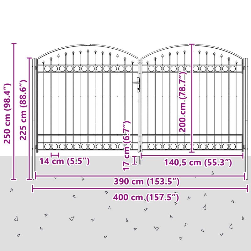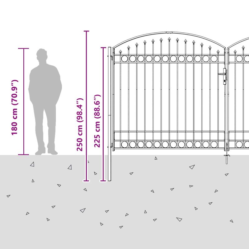 Врата за ограда с заключване Сив 301 x 224.5 см Стомана
