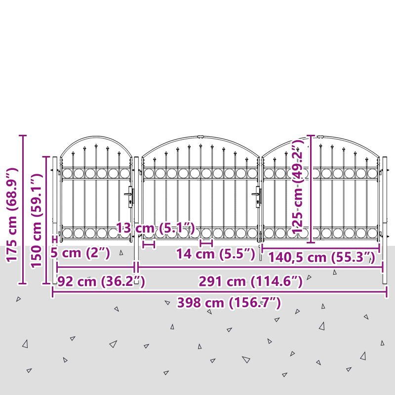 Врата за ограда с аркиран връх Assen Сив 4 x 1,25 m Стомана