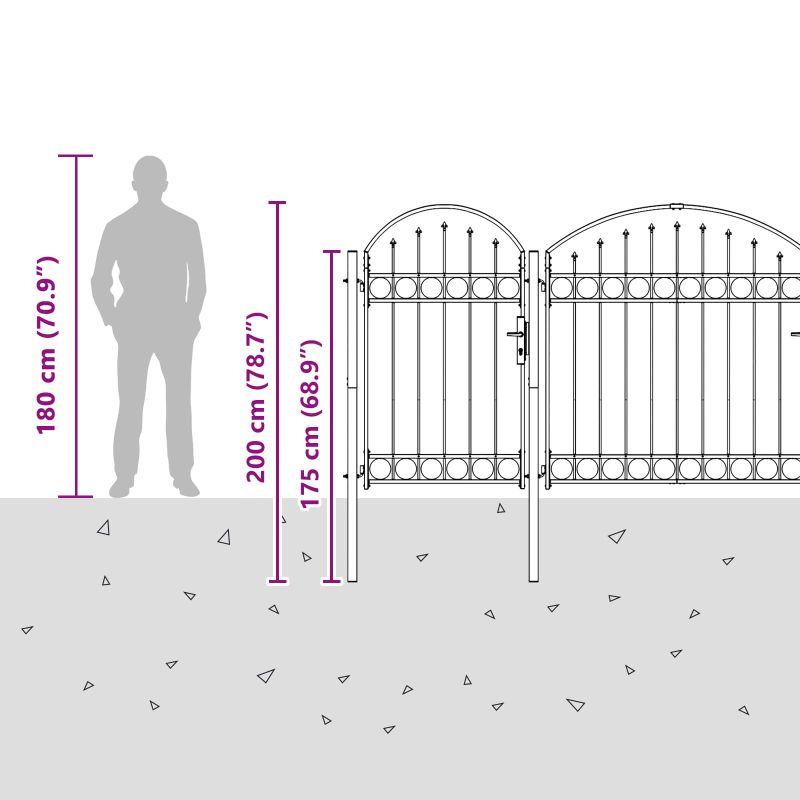 Врата за ограда с аркиран връх Assen Сив 400 x 100 cm Стомана