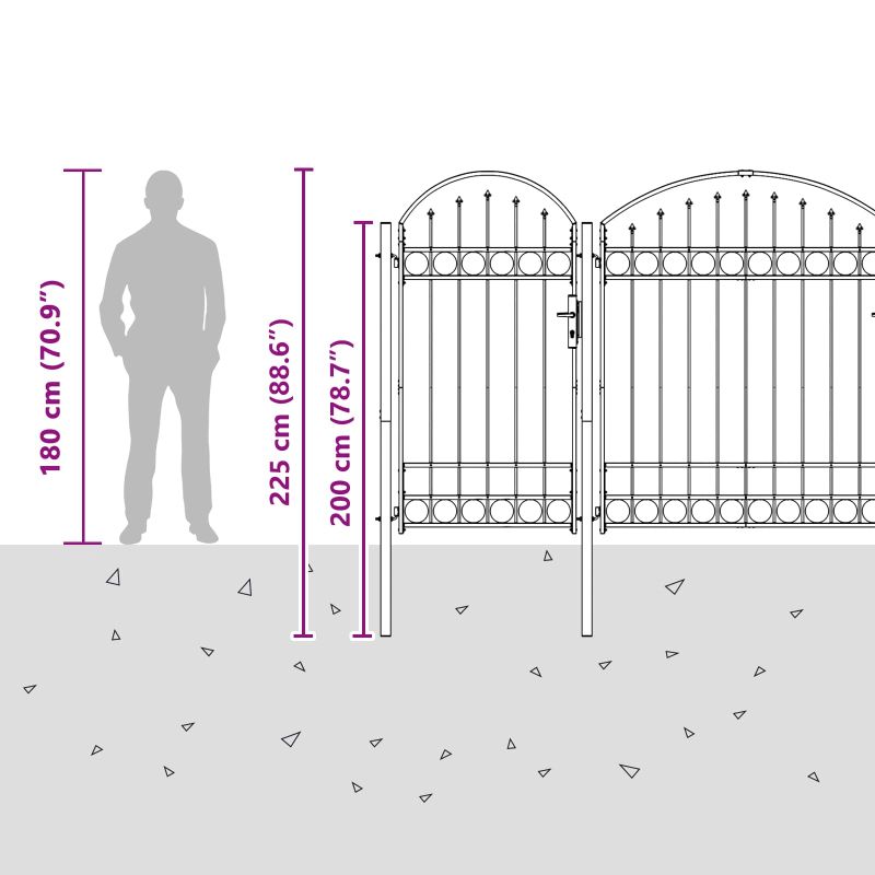 Врата за ограда с аркиран връх Assen Сив 400 x 125 cm Стомана