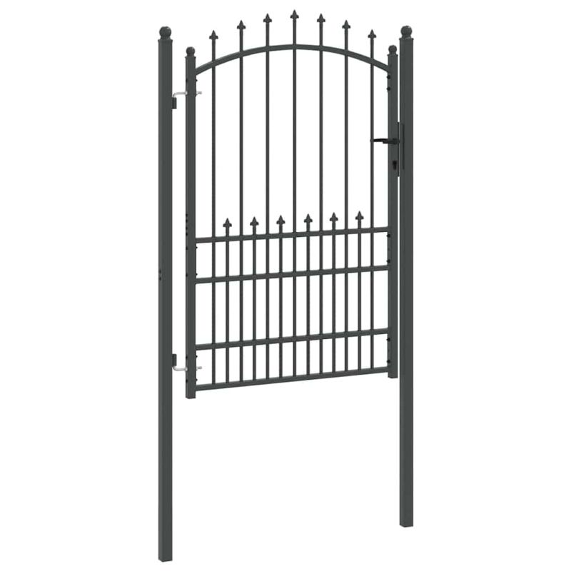 Съвременната врата с зъбци добавя модерен акцент на всяка открита среда. Тази врата, с чисти линии и ненатрапчив стил, предлага естетическа стойност и функционалност. Прахово боядисаната стомана я прави устойчива на атмосферни влияния, идеална за градини или тераси. Качество на материала: Изработена от прахово боядисана стомана, устойчива на всички климатични условия. Този материал предлага гладък завършек, който подхожда на съвременната естетика, осигурявайки дълготрайна издръжливост. Здравината ѝ гарантира, че имота ви остава подсигурен през всички сезони, с минимална поддръжка, нужна за поддържане на безупречния ѝ вид. Здрави заключващи механизми: Оснащена с ключалки, тази врата повишава сигурността, предотвратявайки неразрешен достъп. Известни с мощността си, тези ключалки са с ключово управление, идеални за по-тежки конструкции. С три включени ключа, те осигуряват спокойствие, защото вашата градина и тераса са защитени дори когато не сте там. Архитектурен стил: Арковият връх в комбинация с елегантни зъбци придава стилен вид, който украсява имота ви. Този артистичен елемент не само че увеличава визуалната привлекателност, но и предпазва от катерене. Балансът между форма и функция го прави подходящ за всякакви открити пространства. Пълен пакет: Доставя се с два устойчиви стълба и панти, този комплект улеснява инсталацията. Практичните компоненти осигуряват единен вид на вашето външно пространство. Проектирана за леснота и дълготрайност, компонентите гарантират безпроблемна работа и здрава структура. Насоки за поддръжка: Поддържайте елегантността ѝ с просто избърсване с влажна кърпа. Тази рутинна поддръжка гарантира, че вратата остава толкова впечатляваща, колкото и в деня на инсталирането, с минимални усилия.