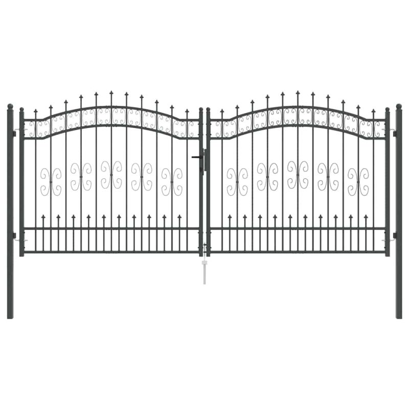 Врата за ограда с връх под формата на копие Сив 305 x 125 см