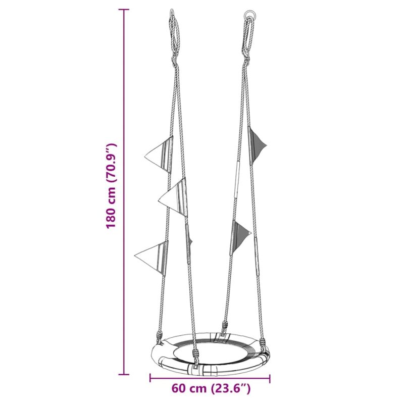 Тази цветна люлка с дъгови флагчета прави всяко открито пространство като игрище. С кръгла, мрежеста структура, тя е идеална за децата да се наслаждават на часове забавление. Ярките цветове добавят много енергия, а стилът е прост и функционален. От градини до тераси, присъствието й е игриво и насърчава взаимодействието. Тази люлка е страхотно място за игра и събирания. Издръжливи полиестерни материали Люлката е от висококачествен полиестер, който е устойчив на време, но осигурява удобна сидалка. Стоманата добавя здравина и я прави безопасна за много деца. Включени дъгови флагчета Ярките дъгови флагчета създават весела атмосфера, която приканва децата да играят приятно. Всеки флаг добавя хубав цвят и я прави визуално забавна. Модерен прост дизайн Нейният съвременен дизайн е практичен и стилен. Чистите линии и минималистичният вид се вписват лесно в всяка градина или тераса. Открито местоположение Проектирана специално за външна употреба; идеална за градини и тераси, добавяща допълнение към семейните активности на открито. Люлката е устойчива и остава безопасна при всякакво време. Необходима грижа и поддръжка Минимална поддръжка е нужна; люлката може да се почиства с лесни методи. Това запазва яркостта и функционалността й без нужда от много усилия. Внимание Необходим е монтаж от възрастен. За употреба само в домашни условия. Само за употреба на открито. Максималното натоварване е 100 кг. Да се използва под прякото наблюдение на възрастен. Дълъг кабел. Опасност от задушаване чрез удушаване!