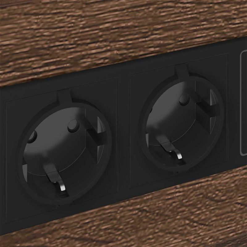 Този рустикален нощен шкаф предлага чудесно съчетание на модерна функция и рустикална визия, правейки го идеален за всяка спалня. Шкафът идва с вградена зарядна станция, която е супер удобна за тези, които винаги имат нужда от заредени устройства. Правоъгълната форма с рустикални акценти добавя топлина и индивидуалност, подходяща за ценителите на добрия дизайн. Поставете го до леглото и имате лесен достъп до всичките си важни вещи. Финиш от инженерна дървесина Основната структура на шкафа е направена от здрава инженерна дървесина, която е известна с издръжливостта си. Този завършек гарантира, че нощният шкаф остава стабилен и красив за дълго време. Вградена зарядна станция С вградени USB и електрически контакти, шкафа покрива всичките ви нужди от електронни устройства. Поставете лампата отгоре и зареждайте телефона си без усилия, без да се борите с кабели. Практичен дизайн за съхранение Германия с много отделения, включително чекмеджета с традиционни дръжки, предоставя място за книги, очила и нощни принадлежности. Дизайнът насърчава подреденото пространство, което прави релаксацията още по-приятна. Стоманена рамка С черна стоманена рамка, шкафът получава допълнителна стабилност. Неговият здрав дизайн осигурява, че ще издържи на ежедневната употреба и ще запази стилния си вид. Проста грижа Поддръжката е лесна, само с избърсване с влажна кърпа. Така шкафът запазва свежия си вид с минимални усилия. ВНИМАНИЕ: За да намалите риска от пожар или токов удар, прочетете всички инструкции преди да инсталирате или използвате многофункционалния контакт. ПРЕДУПРЕЖДЕНИЕ: Не използвайте контакта за свързване на устройства с мощност над 16A. Електричеството е опасно. Повреда и неправилна инсталация, употреба или промяна (замяна на отделни компоненти) могат да доведат до повреда на устройството, което да доведе до токов удар и опасност за потребителя. Ако външният гъвкав кабел или шнур е повреден, той трябва да бъде заменен изключително от производителя или неговия сервизен представител или подобно квалифицирано лице, за да се избегне опасност. USB връзката се използва само за IT устройства. Не свързвайте едно след друго. Не покривайте, когато се използва. Използвайте само в суха среда. Работете само в размотано състояние поради повишеното температурно натоварване. Изключете захранването по време на инсталиране и поддръжка.