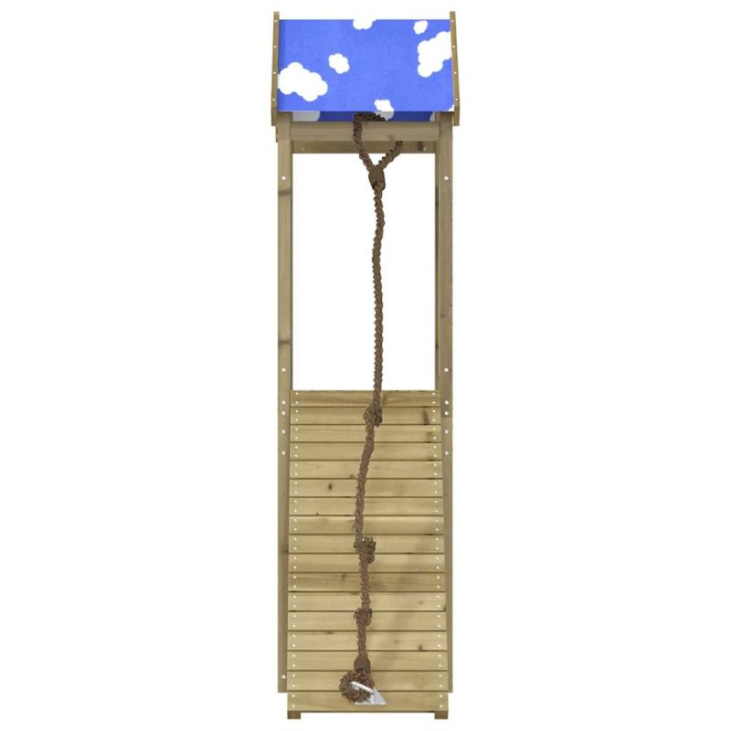 Искате ли да дадете на децата си свободата да играят у дома? Това дървено комбинирано детско съоръжение за игра на открито превръща задния ви двор в детска площадка за изпълнени с фантазия приключения! Издръжлив материал: Тази катерушка е изработена от борова дървесина, импрегнирана с вакуум. Масивната борова дървесина е известна със своята здравина и издръжливост. Нейните прави зърна и отличителни възли допринасят за рустик чара ѝ. Тя е импрегнирана с консервиращ разтвор и е подложена на автоклавно третиране, което повишава устойчивостта ѝ на гниене и атмосферни влияния.Стабилна дървена рамка: Дървената рамка на градинската къща за игра осигурява здравина и стабилност.Многофункционални центрове за дейности: Катерушката разполага с платформа с височина 90 см и се откроява със своята стена за катерене, както и пясъчник. Вашите деца могат да поканят и своите приятелчета да се присъединят към забавлението.Внимателно разработен дизайн: Околните дървени парапети са проектирани така, че да гарантират безопасността на децата по време на веселите им игри. Освен това покривът на облачета осигурява сянка за вашите деца в горещите летни дни.Безкрайно забавление: Този дървен комплект за игра на открито, който предлага много забавления, е идеалният начин децата ви и техните приятели да играят, да прекарват повече време в общуване и да създават спомени с вас! Внимание:Само за домашна употребаИзползване на откритоНе е подходяща за деца под 3 годиниПрепоръчителна възраст на потребителя: 3-8 годиниМаксимално тегло на потребител: 45 кг Предупреждение. Не е подходящ за деца под 3 години. Само за домашна употреба. GPSR
