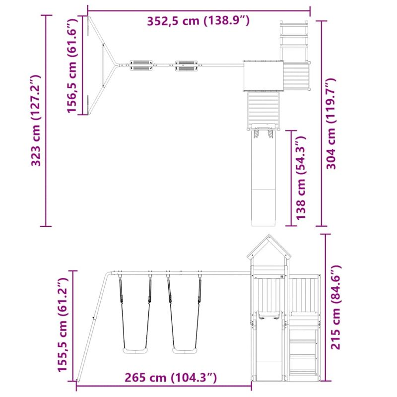 Искате ли да дадете на децата си свободата да играят у дома? Това дървено комбинирано детско съоръжение за игра на открито превръща задния ви двор в детска площадка за изпълнени с фантазия приключения! Издръжлив материал: Това градинско съоръжение за игра е изработено от масивна борова дървесина. Масивната борова дървесина е известна със своята здравина и издръжливост. Нейните прави зърна и отличителни възли допринасят за рустик чара ѝ.Стабилна дървена рамка: Дървената рамка на градинската къща за игра осигурява здравина и стабилност. Освен това крачетата във формата на буквата "А" на детската люлка позволяват баланс.Многофункционални центрове за дейности: Катерушката разполага с платформа с височина 90 см и се отличава с вълнообразна пързалка, две люлки, стълба, както и с пясъчници. Вашите деца могат да поканят и своите приятелчета да се присъединят към забавлението.Внимателно разработен дизайн: Околните дървени парапети са проектирани така, че да гарантират безопасността на децата по време на веселите им игри. Освен това покривът на облачета осигурява сянка за вашите деца в горещите летни дни.Безкрайно забавление: Този дървен комплект за игра на открито, който предлага много забавления, е идеалният начин децата ви и техните приятели да играят, да прекарват повече време в общуване и да създават спомени с вас! Внимание:Само за домашна употребаИзползване на откритоНе е подходяща за деца под 3 годиниПрепоръчителна възраст на потребителя: 3-8 години Предупреждение. Не е подходящ за деца под 3 години. Само за домашна употреба. GPSR