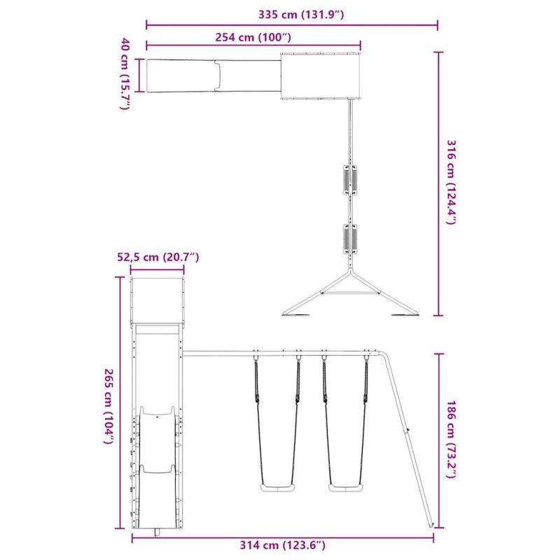 Искате ли да дадете на децата си свободата да играят у дома? Това дървено комбинирано детско съоръжение за игра на открито превръща задния ви двор в детска площадка за изпълнени с фантазия приключения! Издръжлив материал: Това градинско съоръжение за игра е изработено от масивна дугласка дървесина. Дугласката дървесина е известна със своята здравина и издръжливост. Нейният наситен червеникаво-кафяв цвят и уникалните зърнести шарки излъчват топло и естествено настроение. С добра стабилност и устойчивост на атмосферни влияния, тя е идеална за изработка на вътрешни и външни мебели.Стабилна дървена рамка: Дървената рамка на градинската къща за игра осигурява здравина и стабилност. Освен това крачетата във формата на буквата "А" на детската люлка позволяват баланс.Многофункционални центрове за дейности: Катерушката разполага с платформа с височина 118 см и се отличава с вълнообразна пързалка, две люлки, стена за катерене, както и с пясъчник. Вашите деца могат да поканят и своите приятелчета да се присъединят към забавлението.Внимателно разработен дизайн: Околните дървени парапети са проектирани така, че да гарантират безопасността на децата по време на веселите им игри. Освен това покривът на облачета осигурява сянка за вашите деца в горещите летни дни.Безкрайно забавление: Този дървен комплект за игра на открито, който предлага много забавления, е идеалният начин децата ви и техните приятели да играят, да прекарват повече време в общуване и да създават спомени с вас! Внимание:Само за домашна употребаИзползване на откритоНе е подходяща за деца под 3 годиниПрепоръчителна възраст на потребителя: 3-8 години Предупреждение. Не е подходящ за деца под 3 години. Само за домашна употреба. GPSR