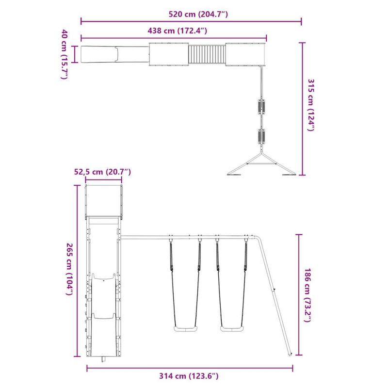 Комбинирано детско съоръжение, масивна дугласка дървесина