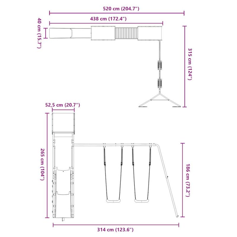 Искате ли да дадете на децата си свободата да играят у дома? Това дървено комбинирано детско съоръжение за игра на открито превръща задния ви двор в детска площадка за изпълнени с фантазия приключения! Издръжлив материал: Това градинско съоръжение за игра е изработена от борова дървесина, импрегнирана с вакуум. Масивната борова дървесина е известна със своята здравина и издръжливост. Нейните прави зърна и отличителни възли допринасят за рустик чара ѝ. Тя е импрегнирана с консервиращ разтвор и е подложена на автоклавно третиране, което повишава устойчивостта ѝ на гниене и атмосферни влияния.Стабилна дървена рамка: Дървената рамка на градинската къща за игра осигурява здравина и стабилност. Освен това крачетата във формата на буквата "А" на детската люлка позволяват баланс.Многофункционални центрове за дейности: Катерушката разполага с платформа с височина 118 см и се отличава с вълнообразна пързалка, две люлки, стена за катерене, както и с пясъчници. Вашите деца могат да поканят и своите приятелчета да се присъединят към забавлението.Внимателно разработен дизайн: Околните дървени парапети са проектирани така, че да гарантират безопасността на децата по време на веселите им игри. Освен това покривът на облачета осигурява сянка за вашите деца в горещите летни дни.Безкрайно забавление: Този дървен комплект за игра на открито, който предлага много забавления, е идеалният начин децата ви и техните приятели да играят, да прекарват повече време в общуване и да създават спомени с вас! Внимание:Само за домашна употребаИзползване на откритоНе е подходяща за деца под 3 годиниПрепоръчителна възраст на потребителя: 3-8 години Предупреждение. Не е подходящ за деца под 3 години. Само за домашна употреба. GPSR