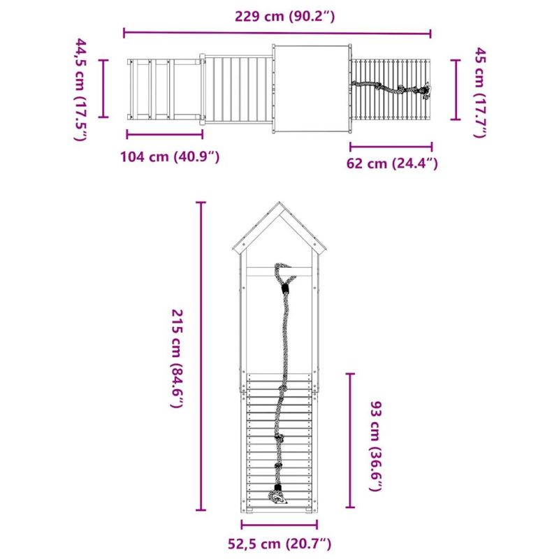 Искате ли да дадете на децата си свободата да играят у дома? Това дървено комбинирано детско съоръжение за игра на открито превръща задния ви двор в детска площадка за изпълнени с фантазия приключения! Издръжлив материал: Тази катерушка е изработена от масивна борова дървесина. Масивната борова дървесина е известна със своята здравина и издръжливост. Нейните прави зърна и отличителни възли допринасят за рустик чара ѝ.Стабилна дървена рамка: Дървената рамка на градинската къща за игра осигурява здравина и стабилност.Многофункционални центрове за дейности: Катерушката разполага с платформа с височина 90 см и се откроява със своята стена за катерене, стълба, както и с пясъчник. Вашите деца могат да поканят и своите приятелчета да се присъединят към забавлението.Внимателно разработен дизайн: Околните дървени парапети са проектирани така, че да гарантират безопасността на децата по време на веселите им игри. Освен това покривът на облачета осигурява сянка за вашите деца в горещите летни дни.Безкрайно забавление: Този дървен комплект за игра на открито, който предлага много забавления, е идеалният начин децата ви и техните приятели да играят, да прекарват повече време в общуване и да създават спомени с вас! Внимание:Само за домашна употребаИзползване на откритоНе е подходяща за деца под 3 годиниПрепоръчителна възраст на потребителя: 3-8 годиниМаксимално тегло на потребител: 45 кг Предупреждение. Не е подходящ за деца под 3 години. Само за домашна употреба. GPSR