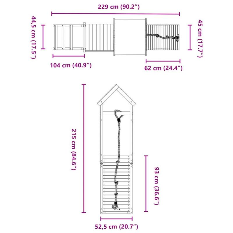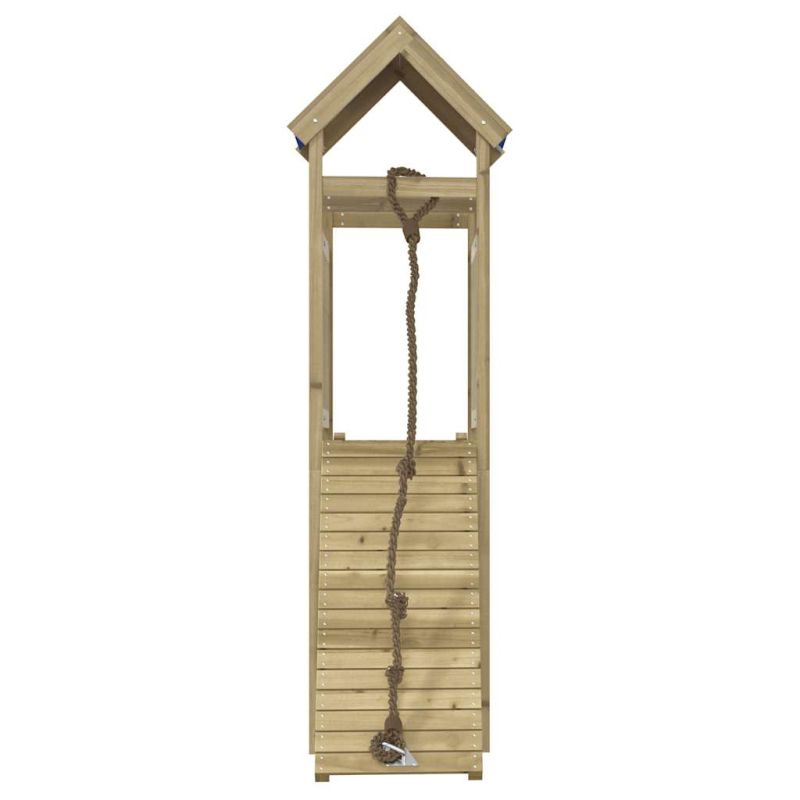 Искате ли да дадете на децата си свободата да играят у дома? Това дървено комбинирано детско съоръжение за игра на открито превръща задния ви двор в детска площадка за изпълнени с фантазия приключения! Издръжлив материал: Тази катерушка е изработена от борова дървесина, импрегнирана с вакуум. Масивната борова дървесина е известна със своята здравина и издръжливост. Нейните прави зърна и отличителни възли допринасят за рустик чара ѝ. Тя е импрегнирана с консервиращ разтвор и е подложена на автоклавно третиране, което повишава устойчивостта ѝ на гниене и атмосферни влияния.Стабилна дървена рамка: Дървената рамка на градинската къща за игра осигурява здравина и стабилност.Многофункционални центрове за дейности: Катерушката разполага с платформа с височина 90 см и се откроява със своята стена за катерене, стълба, както и с пясъчник. Вашите деца могат да поканят и своите приятелчета да се присъединят към забавлението.Внимателно разработен дизайн: Околните дървени парапети са проектирани така, че да гарантират безопасността на децата по време на веселите им игри. Освен това покривът на облачета осигурява сянка за вашите деца в горещите летни дни.Безкрайно забавление: Този дървен комплект за игра на открито, който предлага много забавления, е идеалният начин децата ви и техните приятели да играят, да прекарват повече време в общуване и да създават спомени с вас! Внимание:Само за домашна употребаИзползване на откритоНе е подходяща за деца под 3 годиниПрепоръчителна възраст на потребителя: 3-8 годиниМаксимално тегло на потребител: 45 кг Предупреждение. Не е подходящ за деца под 3 години. Само за домашна употреба. GPSR