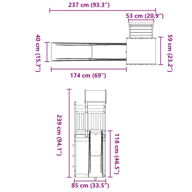 • Материал на кулата за игра: Борова дървесина, импрегнирана под вакуум