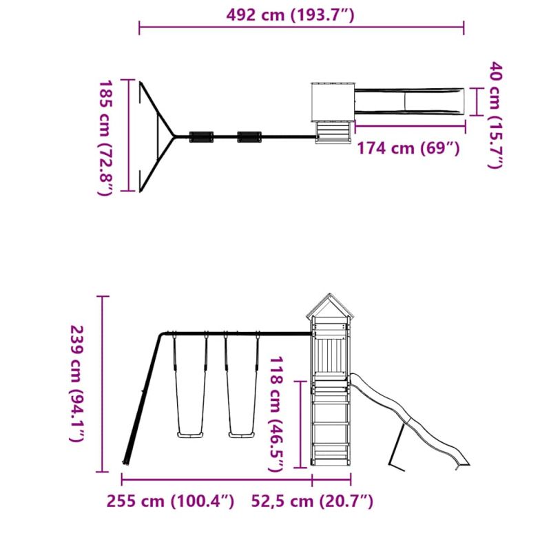 Искате ли да дадете на децата си свободата да играят у дома? Това дървено комбинирано детско съоръжение за игра на открито превръща задния ви двор в детска площадка за изпълнени с фантазия приключения! Издръжлив материал: Това градинско съоръжение за игра е изработено от масивна борова дървесина. Масивната борова дървесина е известна със своята здравина и издръжливост. Нейните прави зърна и отличителни възли допринасят за рустик чара ѝ.Стабилна дървена рамка: Дървената рамка на градинската къща за игра осигурява здравина и стабилност. Освен това крачетата във формата на буквата "А" на детската люлка позволяват баланс.Многофункционални центрове за дейности: Катерушката разполага с платформа с височина 118 см и се отличава с вълнообразна пързалка, две люлки, както и с пясъчници. Вашите деца могат да поканят и своите приятелчета да се присъединят към забавлението.Внимателно разработен дизайн: Околните дървени парапети са проектирани така, че да гарантират безопасността на децата по време на веселите им игри. Освен това покривът на облачета осигурява сянка за вашите деца в горещите летни дни.Безкрайно забавление: Този дървен комплект за игра на открито, който предлага много забавления, е идеалният начин децата ви и техните приятели да играят, да прекарват повече време в общуване и да създават спомени с вас! Внимание:Само за домашна употребаИзползване на откритоНе е подходяща за деца под 3 годиниПрепоръчителна възраст на потребителя: 3-8 години Предупреждение. Не е подходящ за деца под 3 години. Само за домашна употреба. GPSR
