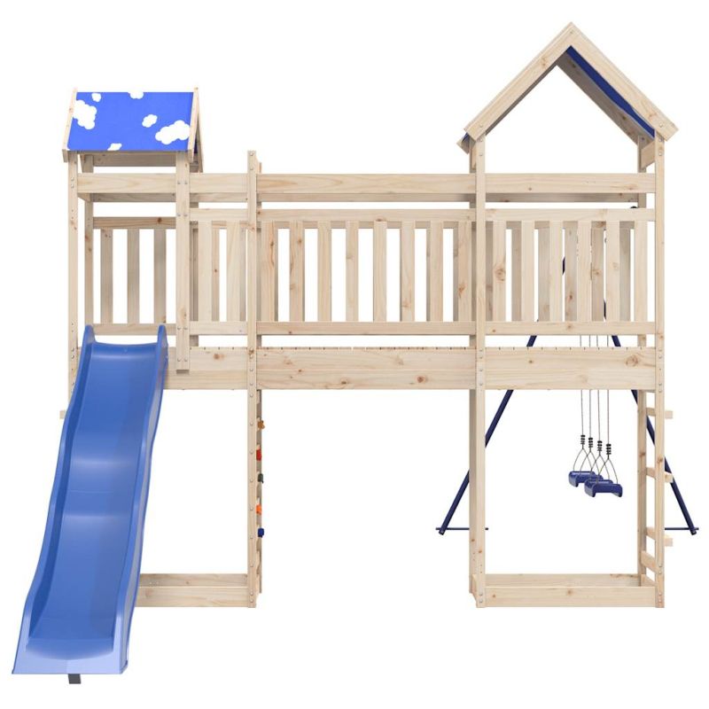 Искате ли да дадете на децата си свободата да играят у дома? Това дървено комбинирано детско съоръжение за игра на открито превръща задния ви двор в детска площадка за изпълнени с фантазия приключения! Издръжлив материал: Това градинско съоръжение за игра е изработено от масивна борова дървесина. Масивната борова дървесина е известна със своята здравина и издръжливост. Нейните прави зърна и отличителни възли допринасят за рустик чара ѝ.Стабилна дървена рамка: Дървената рамка на градинската къща за игра осигурява здравина и стабилност. Освен това крачетата във формата на буквата "А" на детската люлка позволяват баланс.Многофункционални центрове за дейности: Катерушката разполага с платформа с височина 118 см и се отличава с вълнообразна пързалка, люлка, както и с пясъчници. Вашите деца могат да поканят и своите приятелчета да се присъединят към забавлението.Внимателно разработен дизайн: Околните дървени парапети са проектирани така, че да гарантират безопасността на децата по време на веселите им игри. Освен това покривът на облачета осигурява сянка за вашите деца в горещите летни дни.Безкрайно забавление: Този дървен комплект за игра на открито, който предлага много забавления, е идеалният начин децата ви и техните приятели да играят, да прекарват повече време в общуване и да създават спомени с вас! Внимание:Само за домашна употребаИзползване на откритоНе е подходяща за деца под 3 годиниПрепоръчителна възраст на потребителя: 3-8 години Предупреждение. Не е подходящ за деца под 3 години. Само за домашна употреба. GPSR