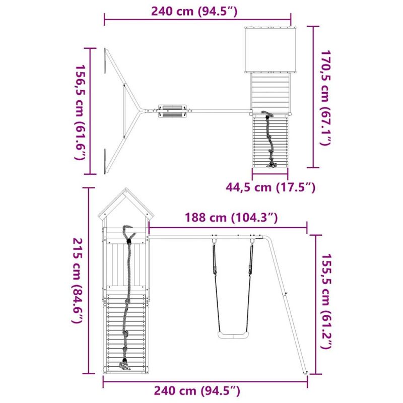 Искате ли да дадете на децата си свободата да играят у дома? Това дървено комбинирано детско съоръжение за игра на открито превръща задния ви двор в детска площадка за изпълнени с фантазия приключения! Издръжлив материал: Това градинско съоръжение за игра е изработено от масивна борова дървесина. Масивната борова дървесина е известна със своята здравина и издръжливост. Нейните прави зърна и отличителни възли допринасят за рустик чара ѝ.Стабилна дървена рамка: Дървената рамка на градинската къща за игра осигурява здравина и стабилност. Освен това крачетата във формата на буквата "А" на детската люлка позволяват баланс.Многофункционални центрове за дейности: Катерушката разполага с платформа с височина 90 см и се откроява със своята стена за катерене, една люлка, както и пясъчник. Вашите деца могат да поканят и своите приятелчета да се присъединят към забавлението.Внимателно разработен дизайн: Околните дървени парапети са проектирани така, че да гарантират безопасността на децата по време на веселите им игри. Освен това покривът на облачета осигурява сянка за вашите деца в горещите летни дни.Безкрайно забавление: Този дървен комплект за игра на открито, който предлага много забавления, е идеалният начин децата ви и техните приятели да играят, да прекарват повече време в общуване и да създават спомени с вас! Внимание:Само за домашна употребаИзползване на откритоНе е подходяща за деца под 3 годиниПрепоръчителна възраст на потребителя: 3-8 годиниМаксимално тегло на потребител: 45 кг Предупреждение. Не е подходящ за деца под 3 години. Само за домашна употреба. GPSR