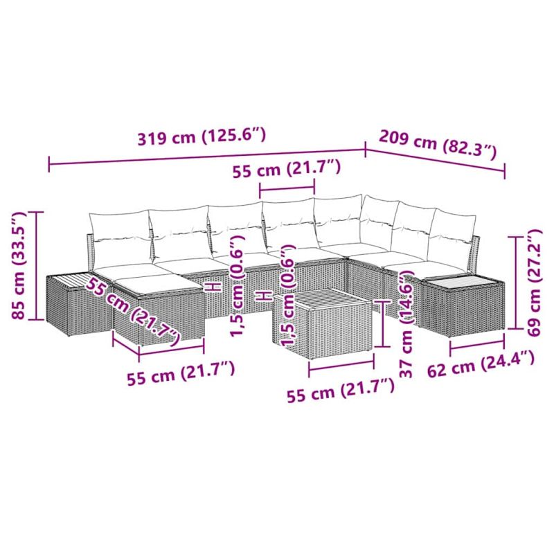 Градински Софа Комплект с възглавница 9 pcs Бежово Полиратан