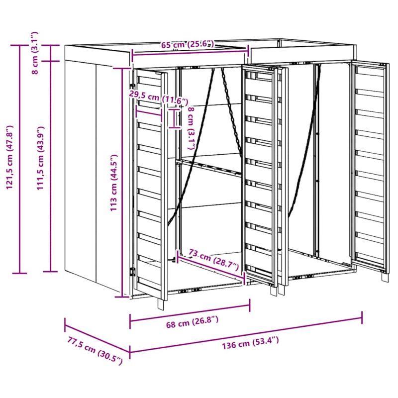 Този контейнер за боклук предлага стилно решение за организиране на контейнерите навън, като същевременно поддържа градината или терасата привлекателна. Съвременният му дизайн лесно се вписва в различни обстановки, предоставяйки функционалност и естетика. Проектиран за външна употреба, този органайзер е издържлив и осигурява пространството ви чисто и подредено. Идеален е за хора, които ценят организацията и чистотата навън. Водоводонепроницаем материал: Предназначен за външна употреба, този контейнер е създаден с водоотблъскващи свойства, за да защити съдържанието си и да запази добрия си вид. Издържа на UV лъчи, така че цветовете остават наситени и структурата му е стабилна през всички сезони. Иновативен разширяем дизайн: Структурата му може да се увеличава, за да побере различен брой контейнери, което е удобно за семейства с различни нужди. Този гъвкав дизайн предоставя лесна адаптивност. Вентилирана функция за ефективност: Включва вентилирани функции за циркулация на въздуха, предотвратявайки лоши миризми и осигурявайки нужната хигиена за вашето открито пространство. Стилен модерен дизайн: Със своя минималистичен вид и чисти линии, този контейнер е идеален за съвременни градини и тераси, придавайки елегантен вид. Лесна поддръжка: Просто го избършете с влажна кърпа, за да запазите добрата му форма. Редовната поддръжка е лесна и осигурява безпроблемно използване.