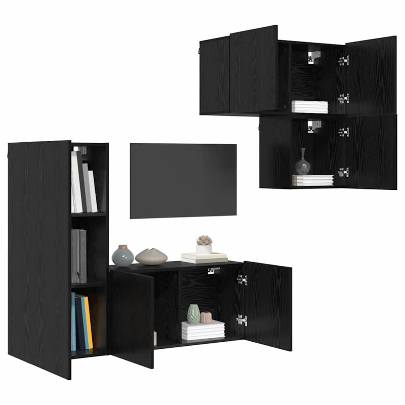 Начало Дом и градина Мебели Секции и поставки за телевизори ТВ шкаф Монтиране на стена 4 pcs Черния дъб Инженерно дърво