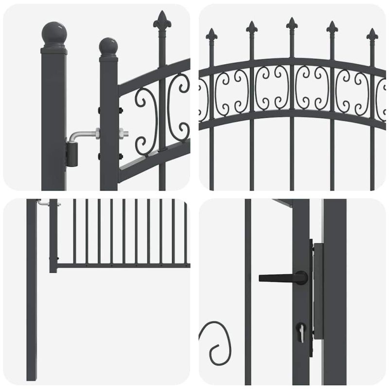 Тази традиционна врата с елегантен дизайн с върха на копие предлага перфектна комбинация от стил и сигурност за вашата градина или тераса. Идеална е за ясно дефинирани, но открити пространства, а класическите детайли подобряват всяка външна обстановка, докато предоставят стабилна бариера. Иконният й вид добавя интерес и характер, правейки я забележителна част както за съвременни, така и за традиционни домове. Качествена стоманена конструкция Правена е от здрава стомана, този продукт предлага невероятна устойчивост на външните условия. Нейната здравина допълва традиционния вид и осигурява дълготрайност, запазвайки структурата си при всякакви метеорологични условия. Отличителен дизайн с копие Върхът с копие придава елегантност на всяка среда, напомняйки за красива архитектура с впечатляващия си силует. Този уникален дизайн предлага не само естетическа стойност, но и увеличена сигурност, нужна за домовете. Заключване с плъзгащ болт Оснащена с надеждно заключване с плъзгащ болт, което максимизира сигурността. Този прост, но здрав механизъм гарантира безопасност и минимизира достъпа на неразрешени лица, като същевременно увеличава полезността на вратата за спокойствие. Традиционен стил Традиционният дизайн се отличава с детайлна изработка, правена с много внимание, и прекрасно допълва класическите градински терени. Внася старо очарование, идеално за откритите пространства, добавящи доза елегантност. Лесна поддръжка Запазете стилния вид лесно. С опростено почистване, като избърсване с влажна кърпа и избягване на абразивни средства, тази врата обещава да изглежда добре с минимални усилия. Редовната грижа удължава живота й.