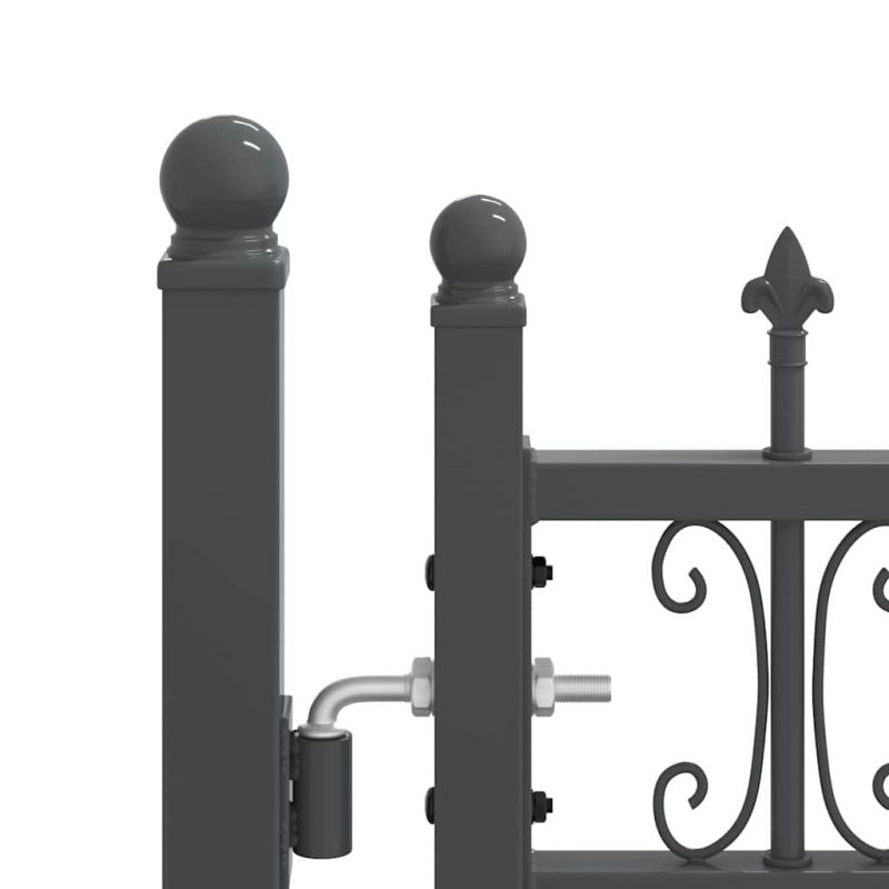 Тази традиционна врата с елегантен дизайн с върха на копие предлага перфектна комбинация от стил и сигурност за вашата градина или тераса. Идеална е за ясно дефинирани, но открити пространства, а класическите детайли подобряват всяка външна обстановка, докато предоставят стабилна бариера. Иконният й вид добавя интерес и характер, правейки я забележителна част както за съвременни, така и за традиционни домове. Качествена стоманена конструкция Правена е от здрава стомана, този продукт предлага невероятна устойчивост на външните условия. Нейната здравина допълва традиционния вид и осигурява дълготрайност, запазвайки структурата си при всякакви метеорологични условия. Отличителен дизайн с копие Върхът с копие придава елегантност на всяка среда, напомняйки за красива архитектура с впечатляващия си силует. Този уникален дизайн предлага не само естетическа стойност, но и увеличена сигурност, нужна за домовете. Заключване с плъзгащ болт Оснащена с надеждно заключване с плъзгащ болт, което максимизира сигурността. Този прост, но здрав механизъм гарантира безопасност и минимизира достъпа на неразрешени лица, като същевременно увеличава полезността на вратата за спокойствие. Традиционен стил Традиционният дизайн се отличава с детайлна изработка, правена с много внимание, и прекрасно допълва класическите градински терени. Внася старо очарование, идеално за откритите пространства, добавящи доза елегантност. Лесна поддръжка Запазете стилния вид лесно. С опростено почистване, като избърсване с влажна кърпа и избягване на абразивни средства, тази врата обещава да изглежда добре с минимални усилия. Редовната грижа удължава живота й.