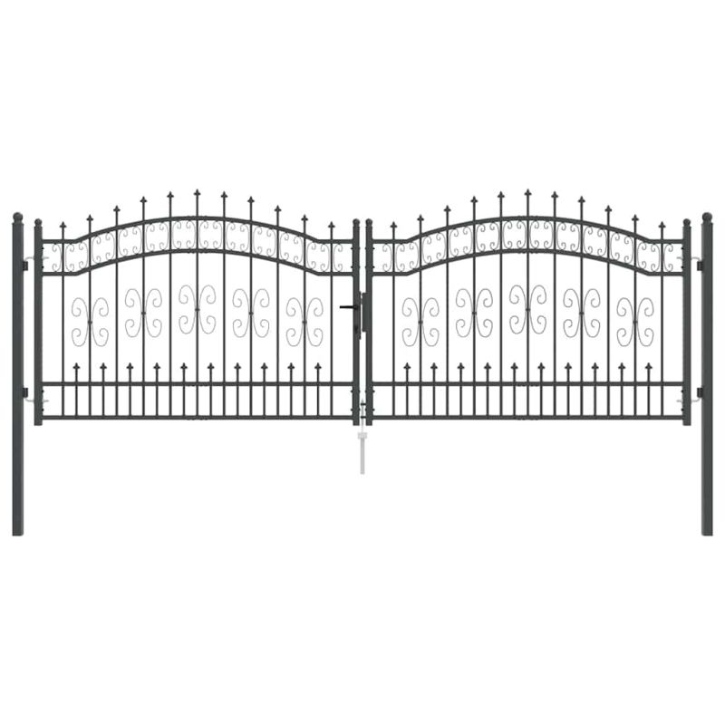 Врата за ограда с връх под формата на копие Сив 305 x 100 см