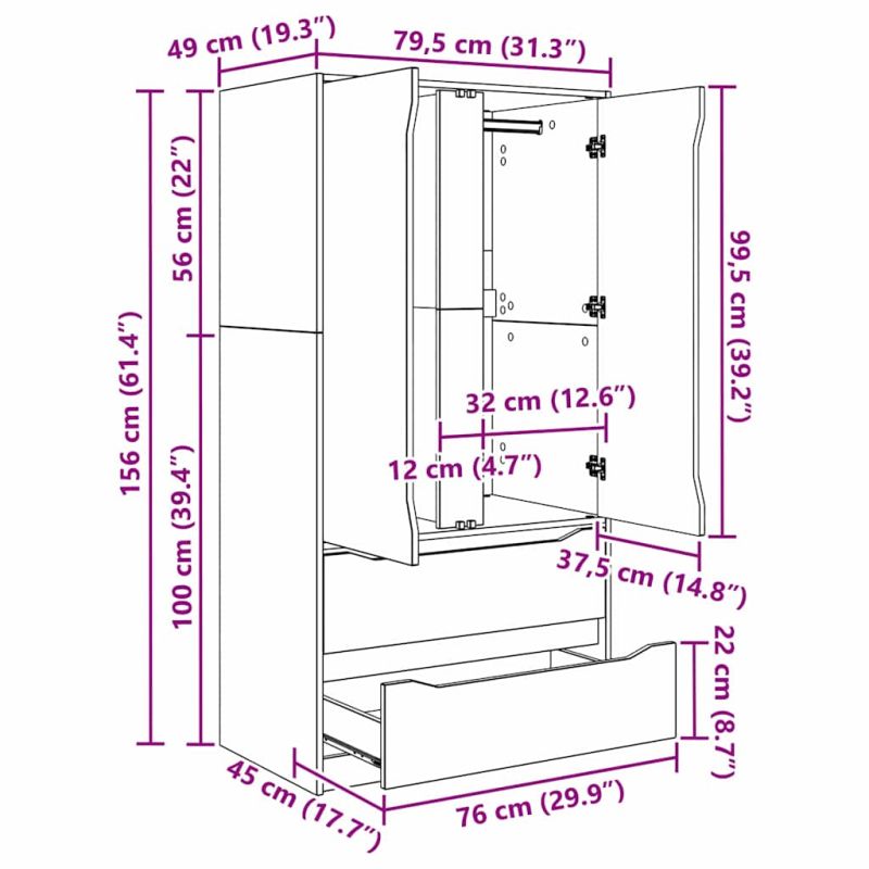 Шкаф за баня с чекмедже Дъб 79,5 x 49 x 156 см Инженерно дърво