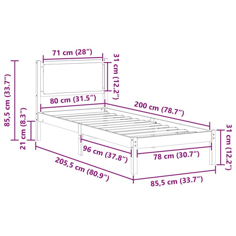 Рамка за легло с таблото Таупе 80 x 200 cm Солидно борово дърво